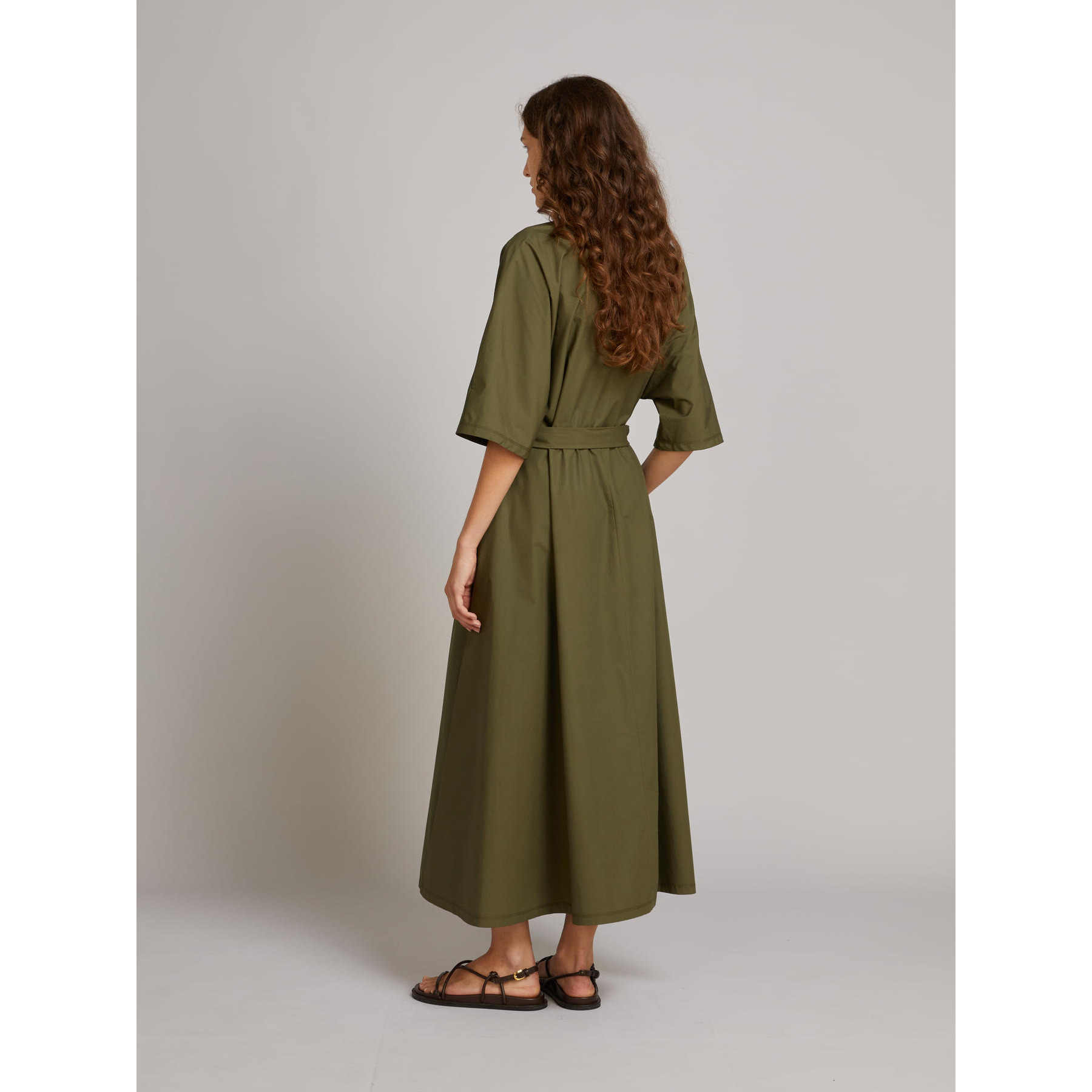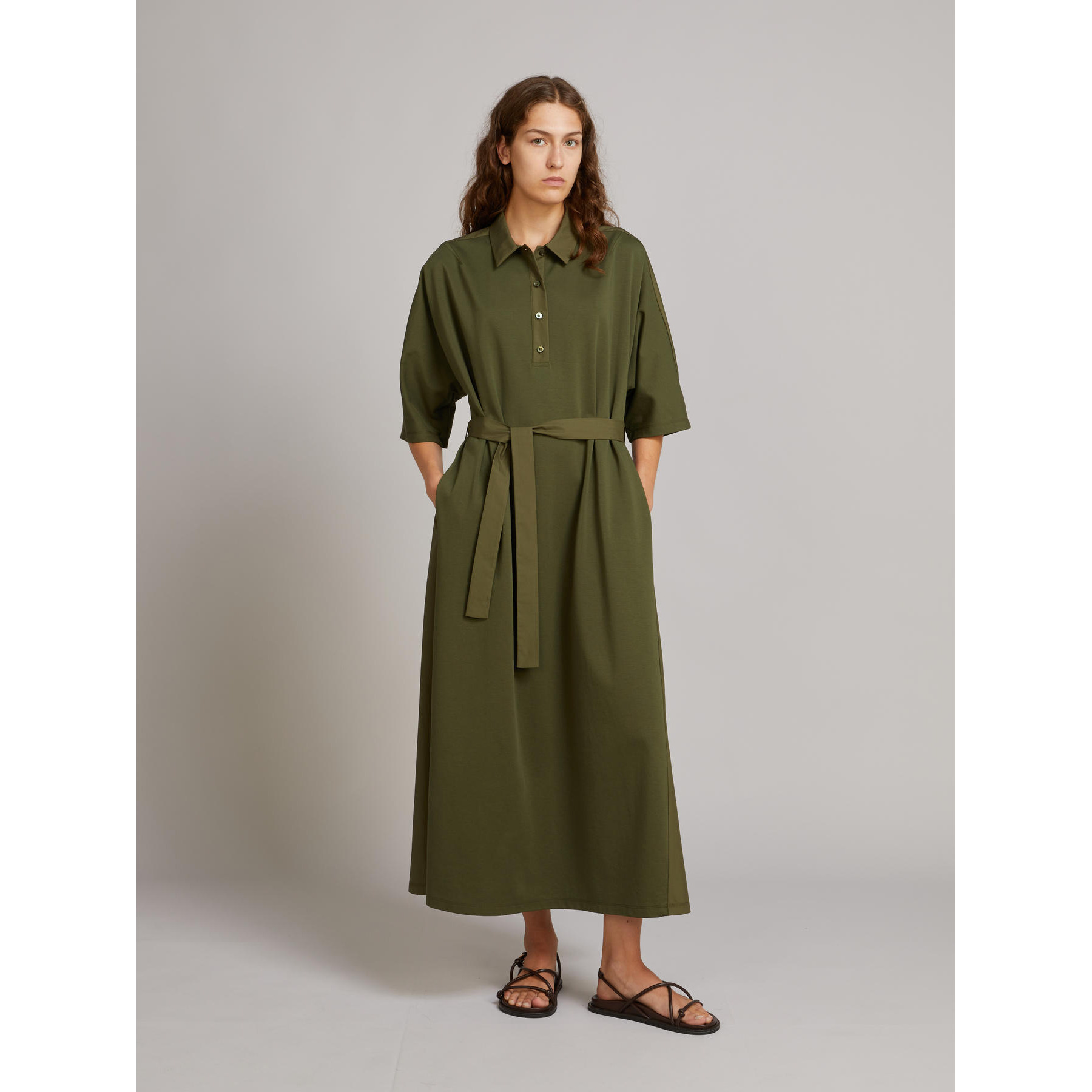 L’ Abito Albero MM MAX MARA, è un abito lungo modello polo, la cintura abbinata da annodare in vita permette di evidenziare la silhouette. Abito in jersey interlock di cotone, inserto in popeline di puro cotone sul retro. Linea svasata, colletto a polo, chiuso con bottoni in madreperla, maniche corte a kimono con pinces, tasche inserite nei fianchi e passanti per cintura in vita. Sfoderato.