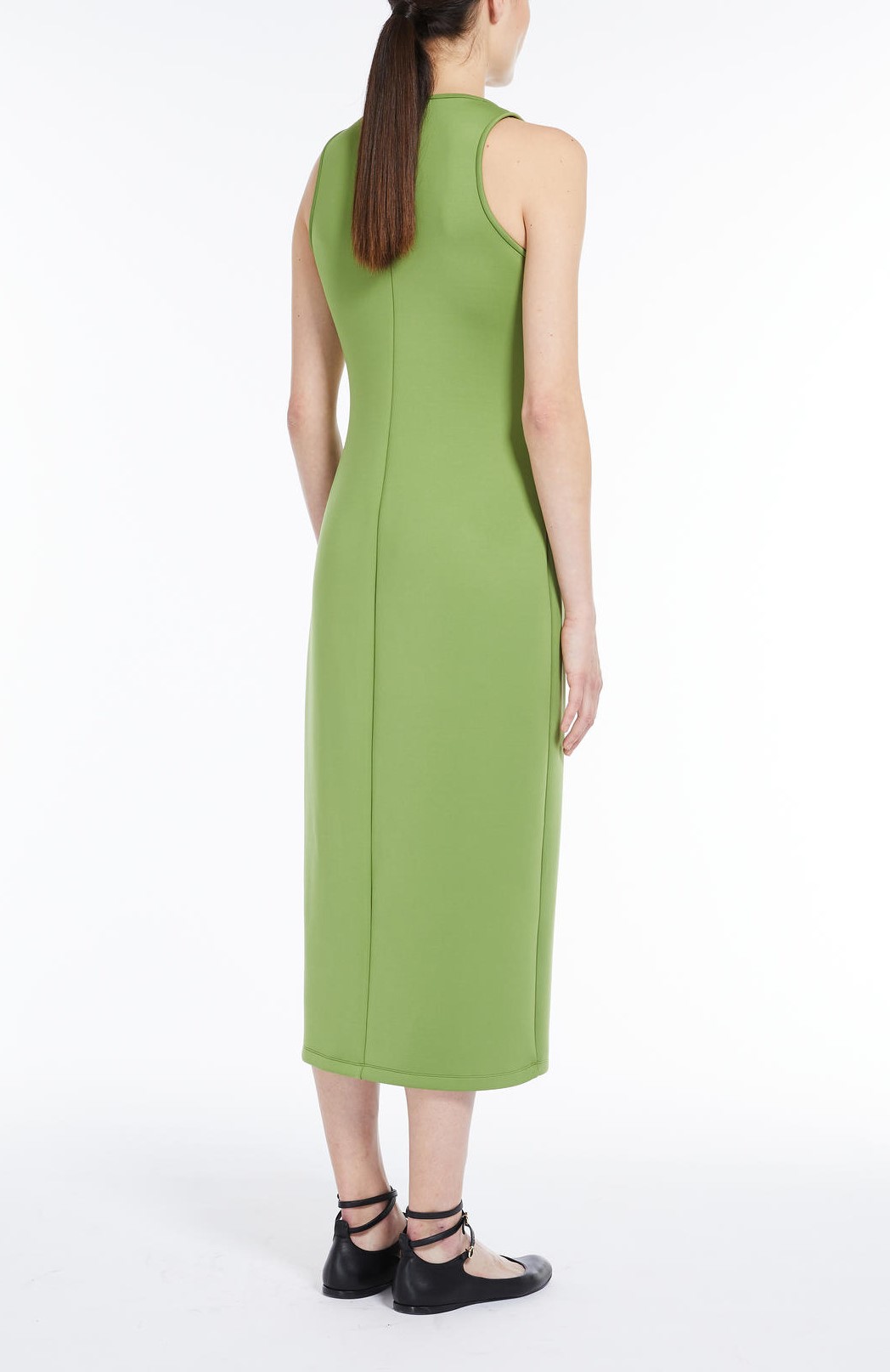 L’ Abito Baccano MAX MARA Leisure, è un abito midi smanicato realizzato in tessuto scuba, con scollo all’americana a giro. Modello dalla silhouette a tubino, caratterizzato da un fit scivolato che esalta la linea morbida del capo.