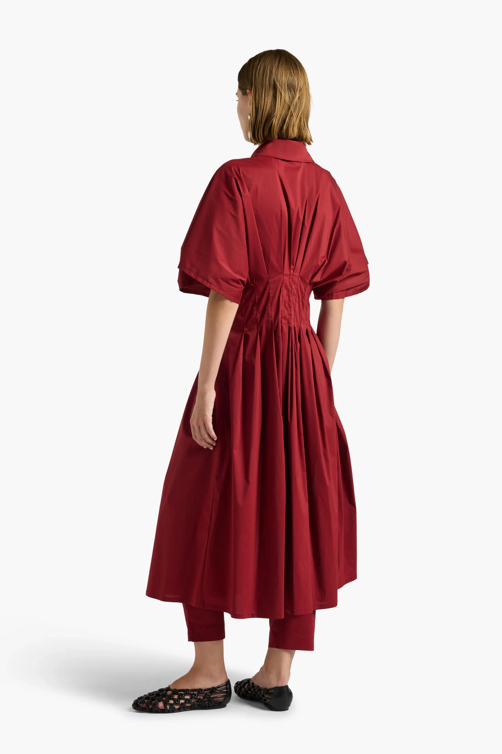 L’ Abito Therese LIVIANA CONTI, è un abito midi a chemisier in popeline stretch con maniche ad aletta al gomito. Collo a camicia, apertura centrale con bottoni nascosti. Cuiciture in vita che creano un effetto clessidra, linea ampia dalla vita al fondo.