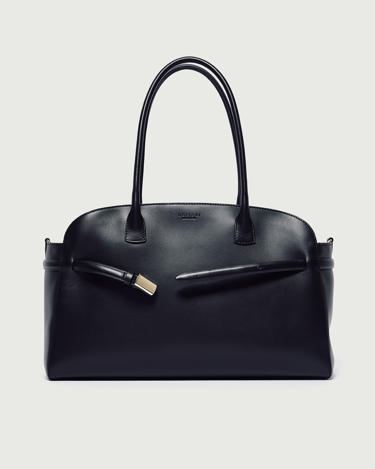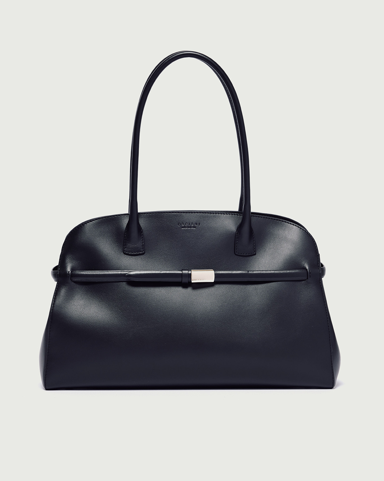 La Borsa Aura Alba Large ORCIANI, è una borsa dalla costruzione estremamente contemporanea e una silhouette essenziale ma in movimento.