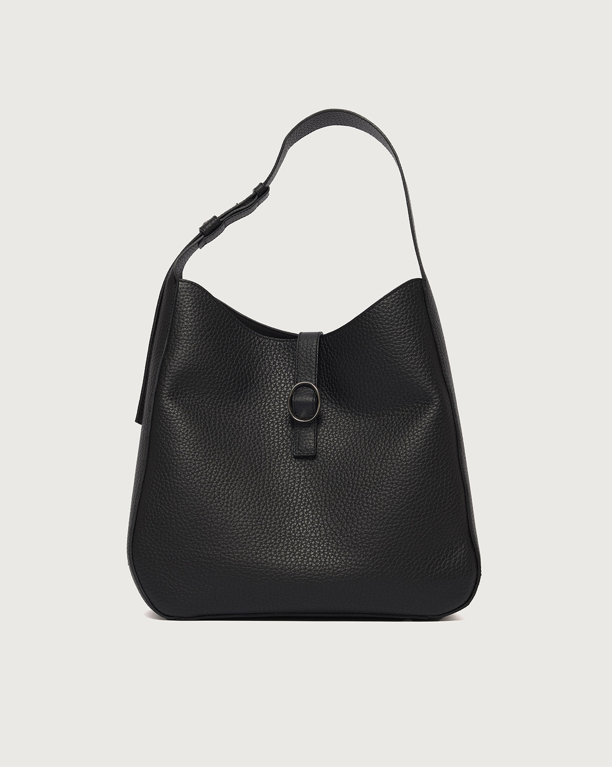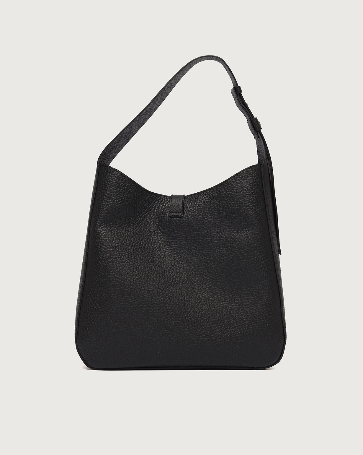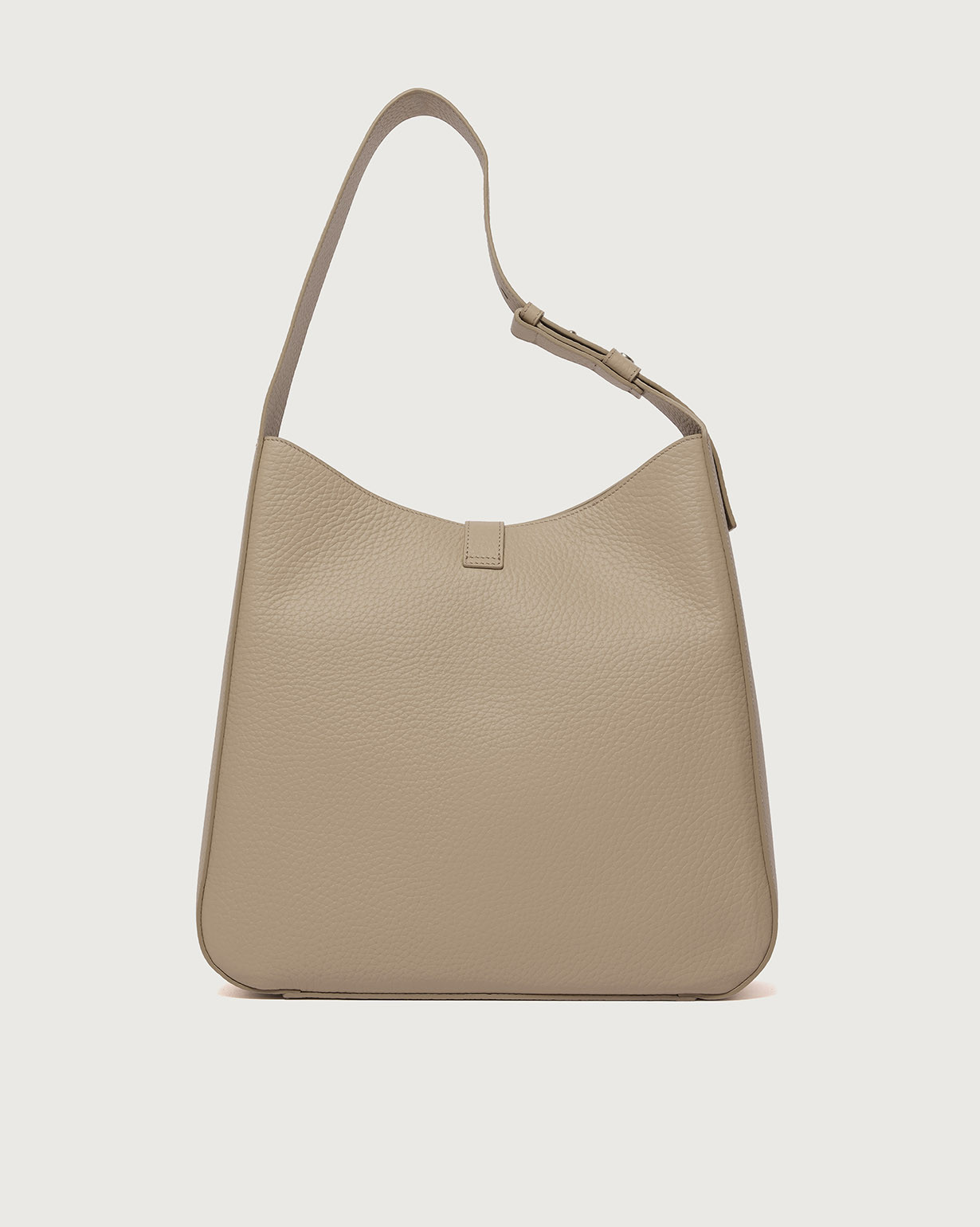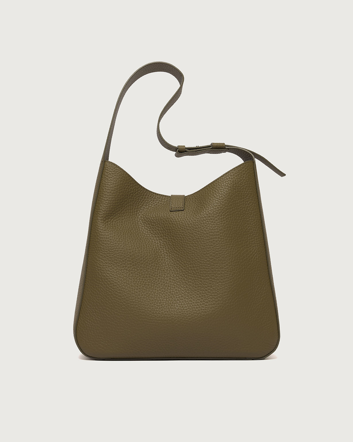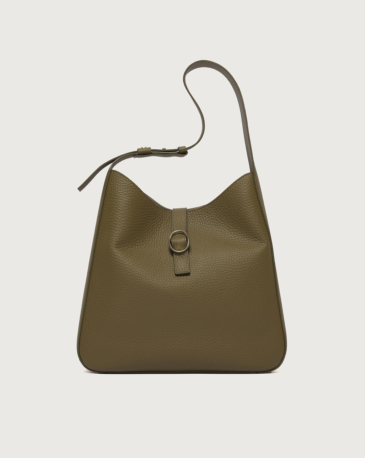 La Borsa Gea Soft ORCIANI, è una borsa a spalla in pelle martellata con manico regolabile, chiusura a fascetta con bottone magnetico, internamente due taschini di cui con zip. Finiture palladio.