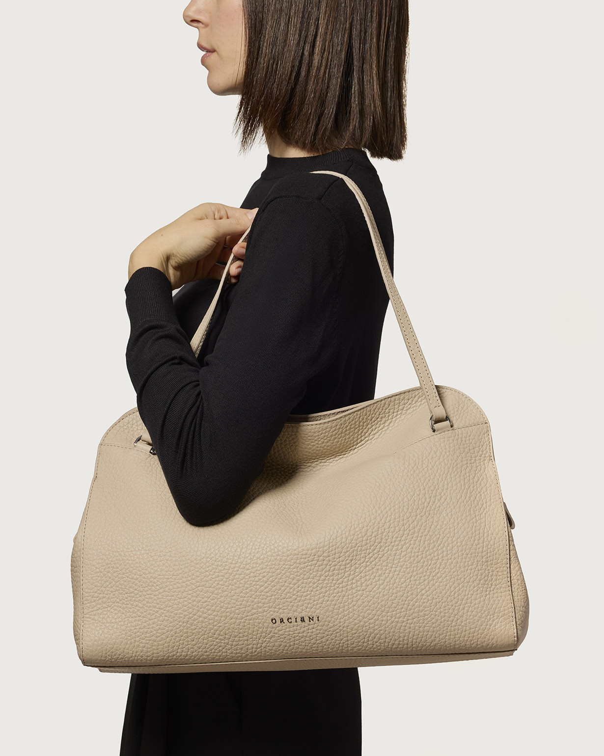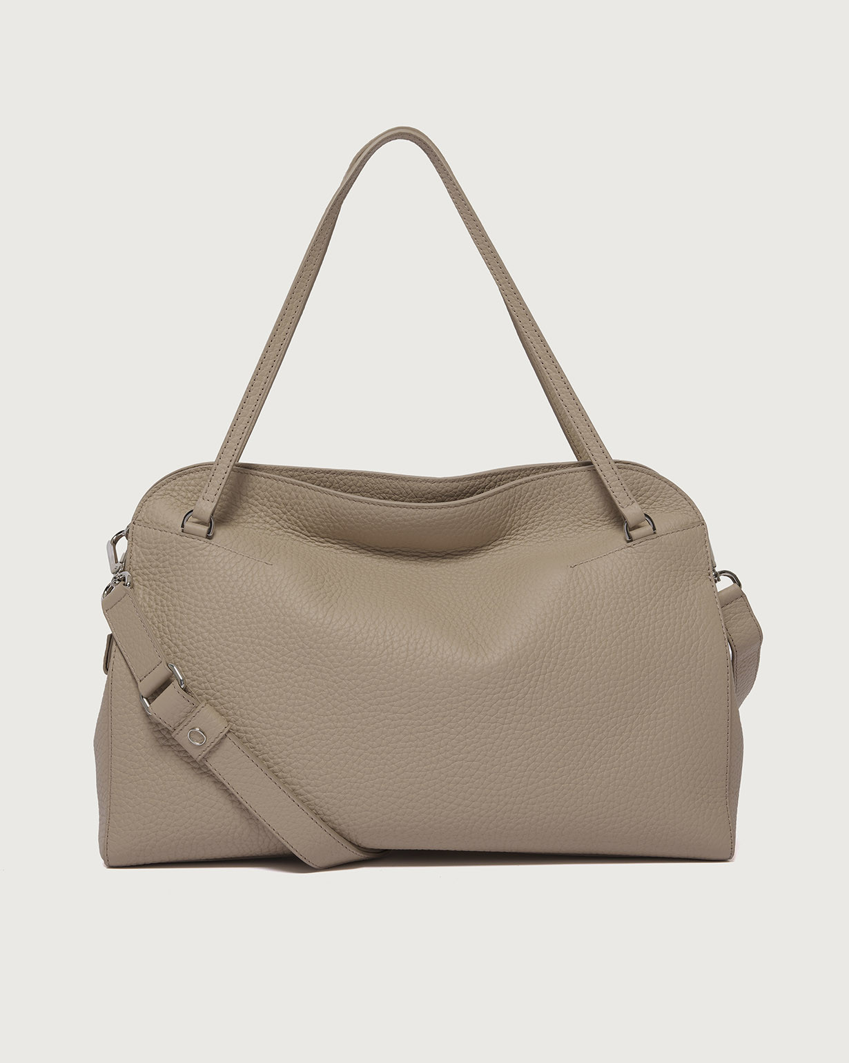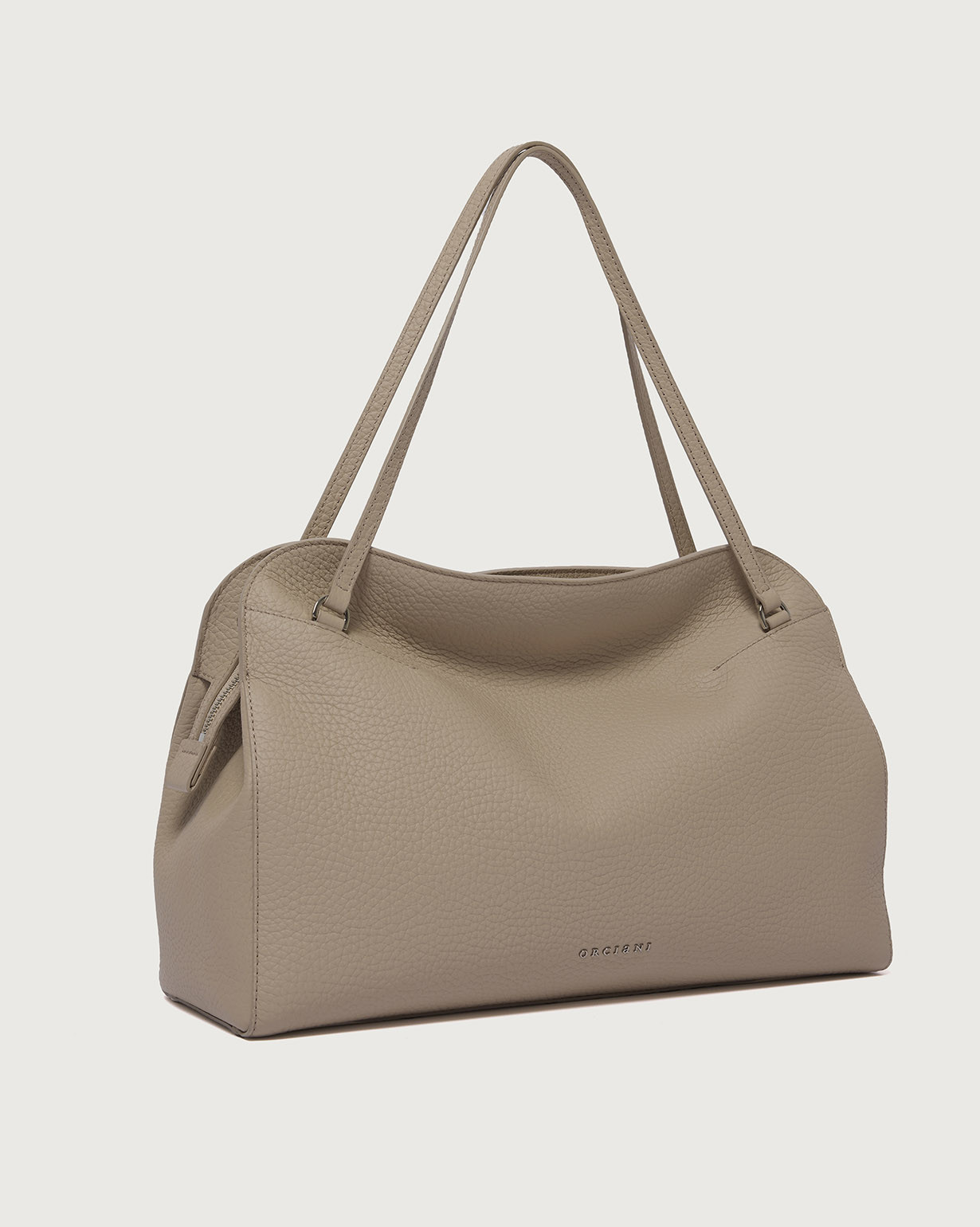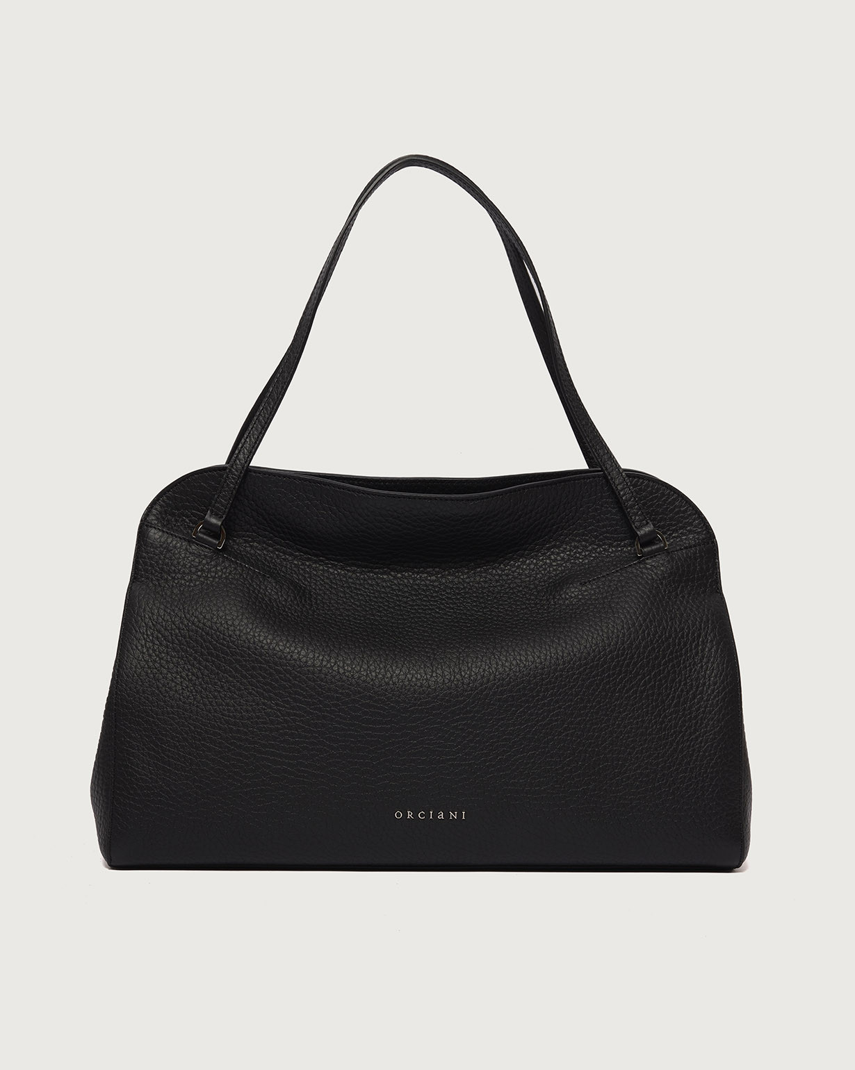La Borsa Lido Soft Large ORCIANI, è una borsa a spalla in pelle martellata con tracolla, chiusura a doppia zip, tasche interne con una a zip.