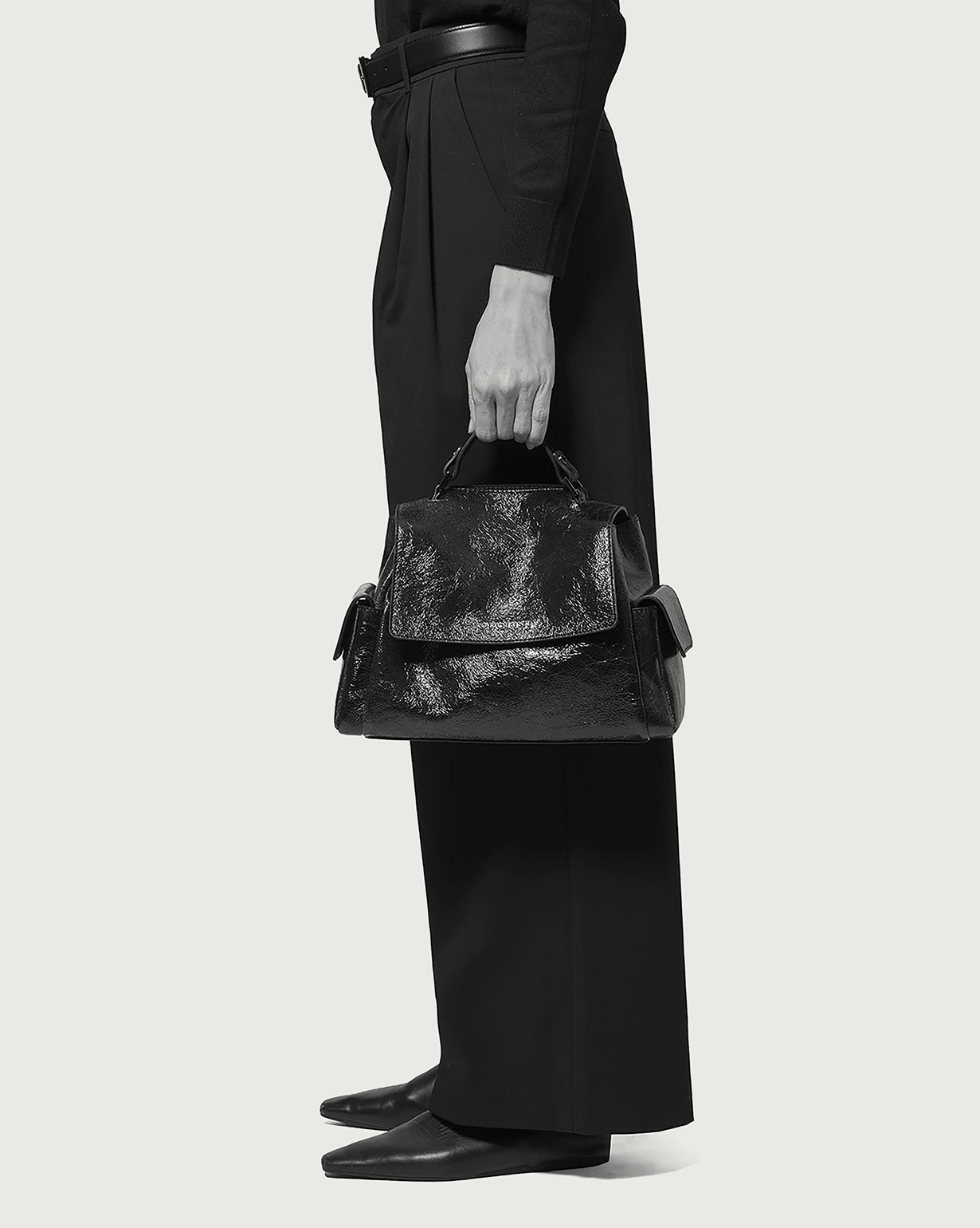 La Borsa Sveva Sense Cargo Small ORCIANI, è una nuova versione cargo della Sveva con tasche laterali in pelle sense.