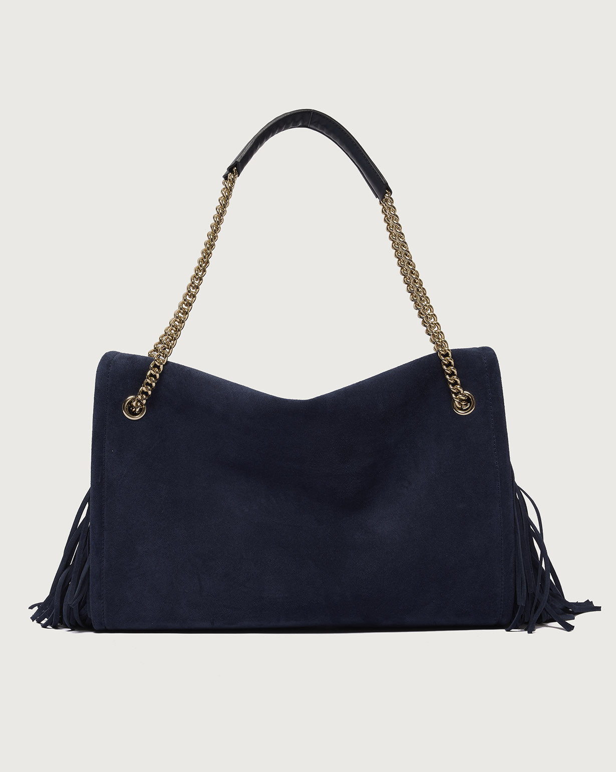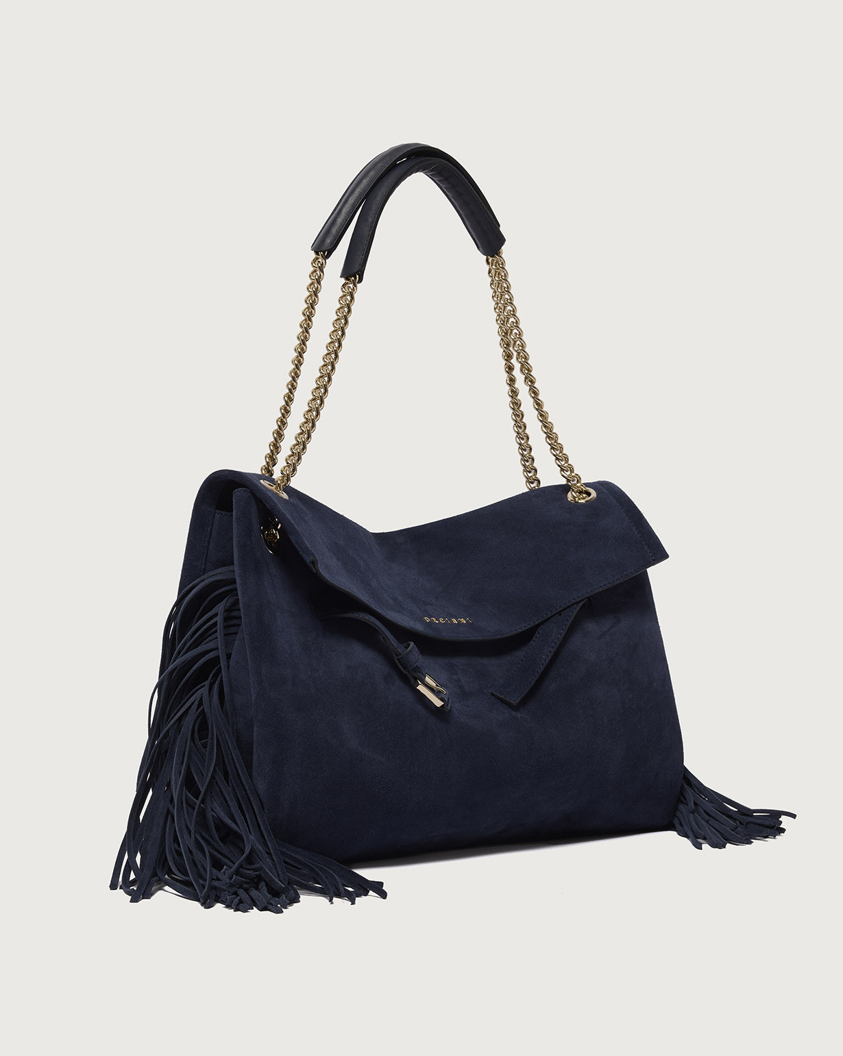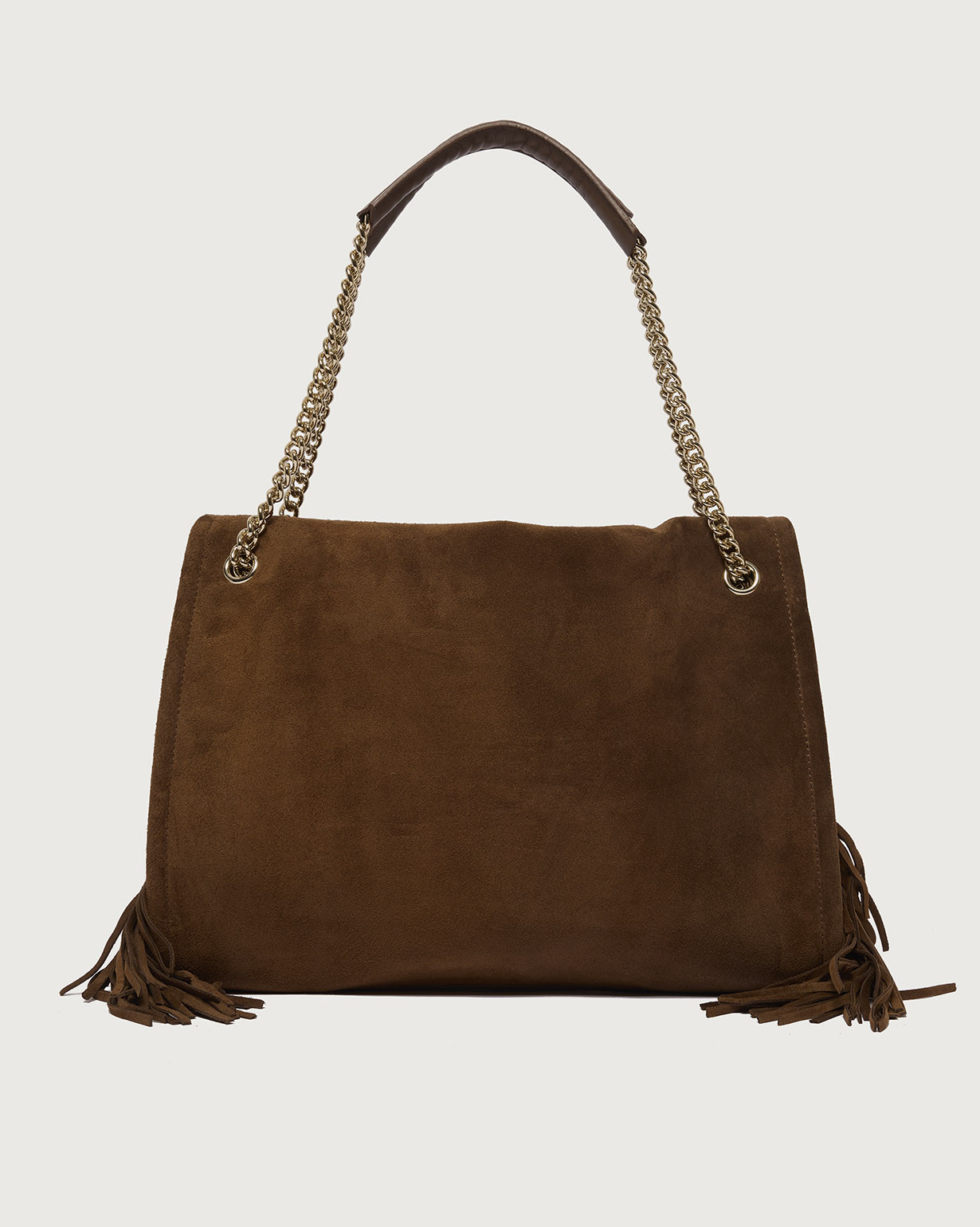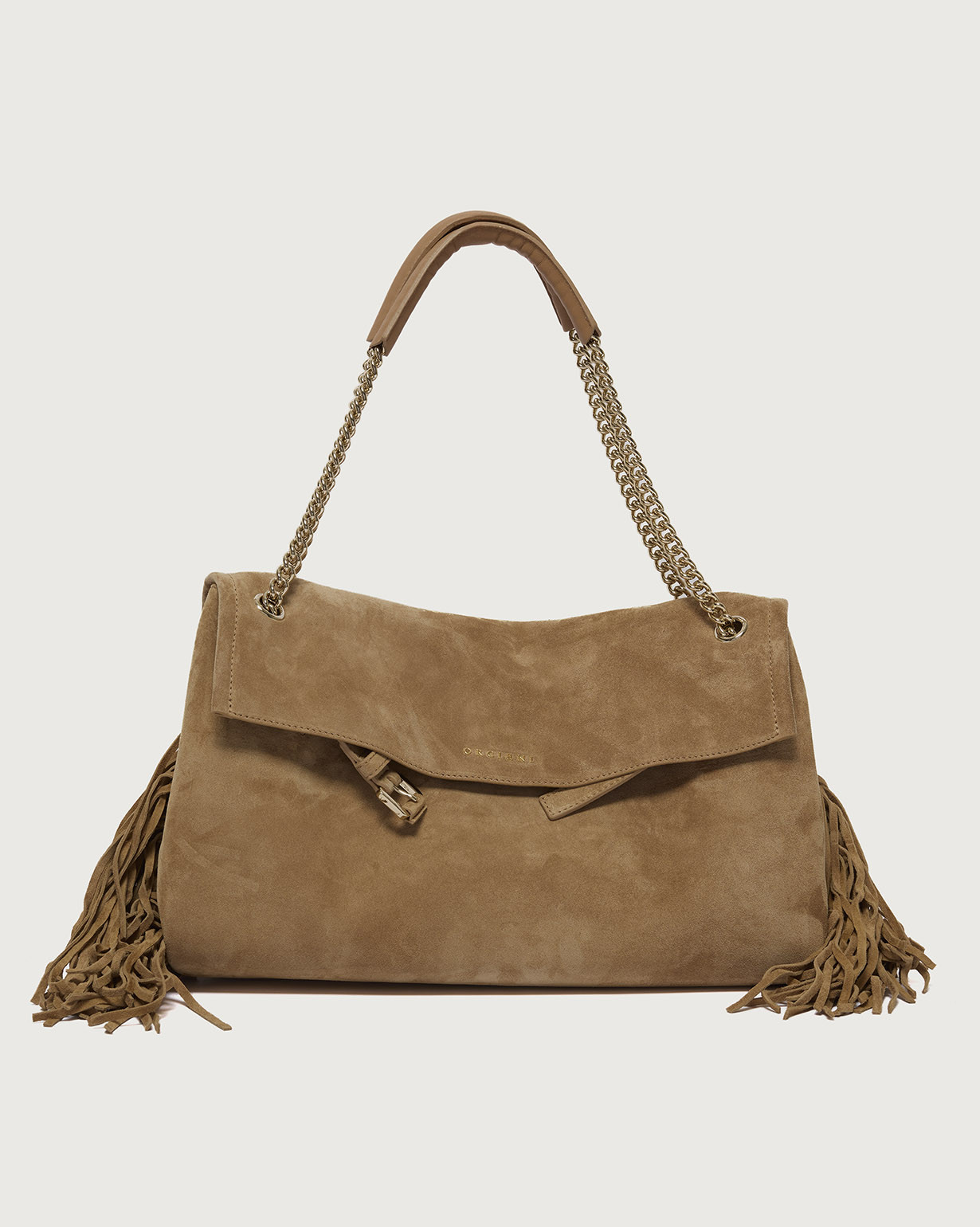 Venus Peach Fringe Midi è una borsa a spalla in pelle scamosciata, elegante e funzionale al contempo.