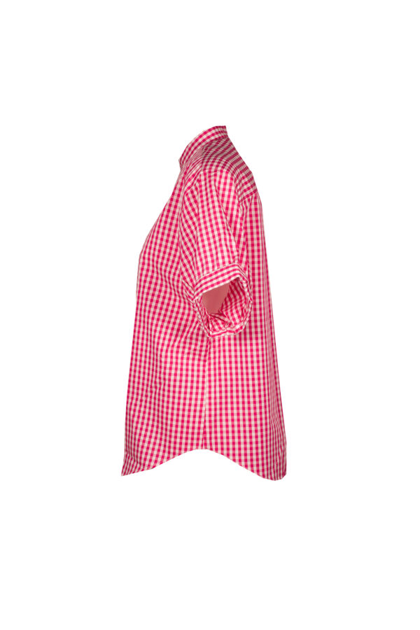 La Camicia Vichy CALIBAN, è una camicia in cotone alla coreana stampa vichy, manica corta con risvolto.