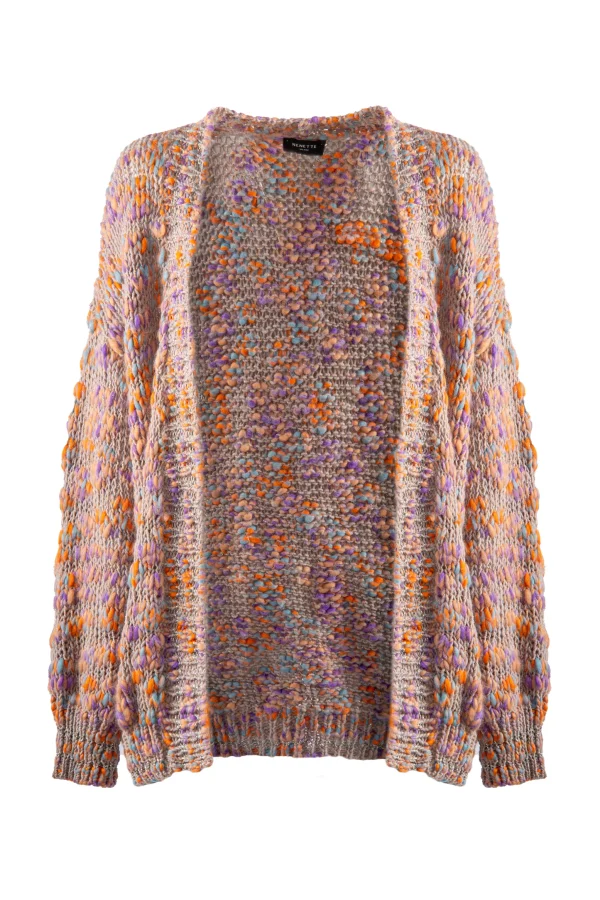Il Cardigan Calcutta NENETTE, è un cardigan realizzato in morbida maglia e presenta una texture a fantasia. Un’ottima scelta per un look elegante ma comodo grazie all’uso di un filato di qualità. Perfetto per le fredde serate invernali.