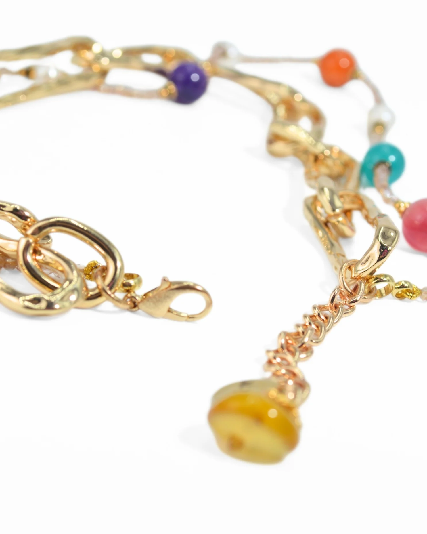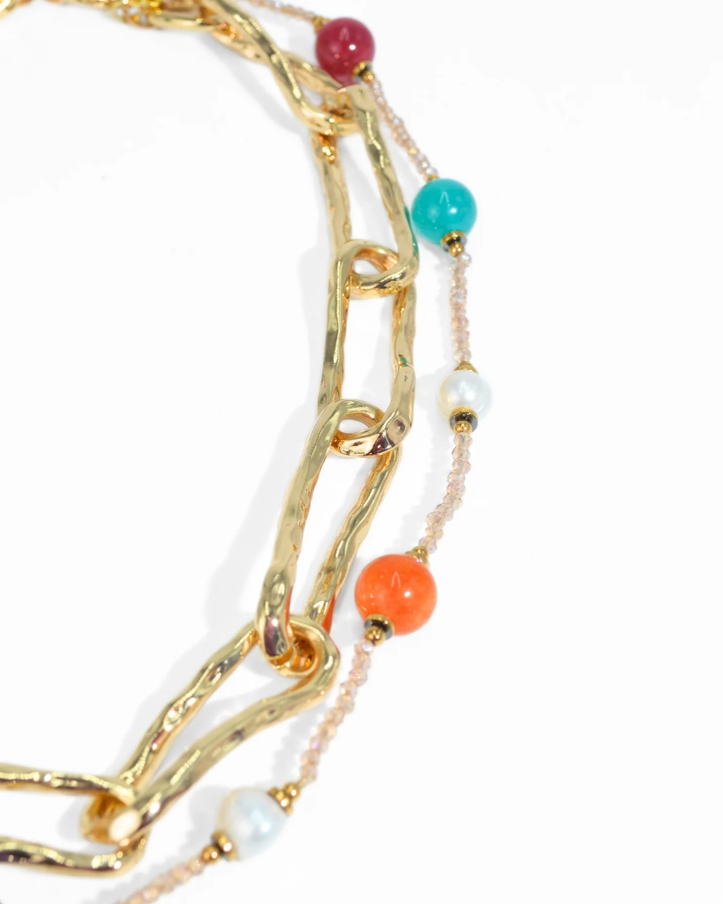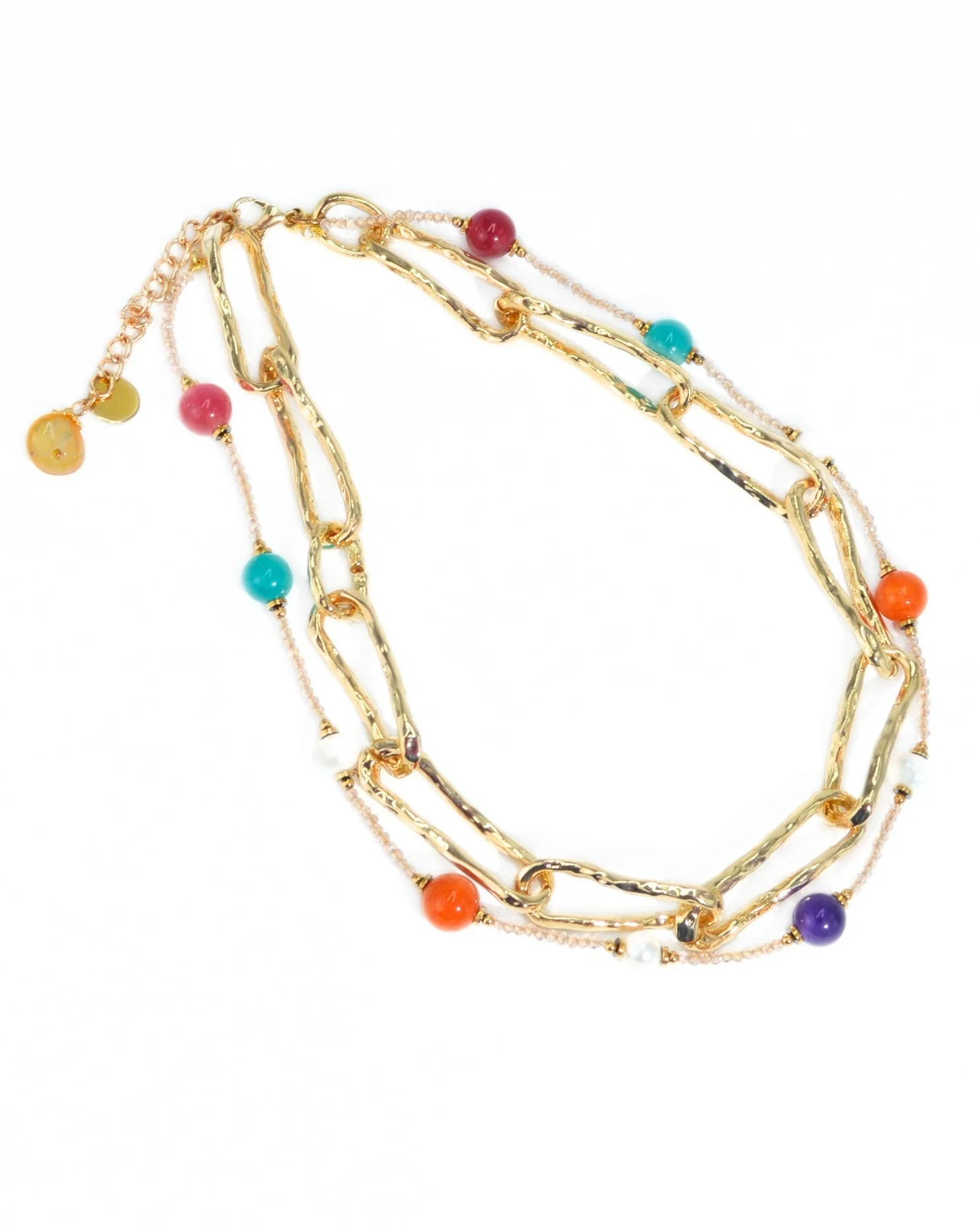 La Collana Chain ALMALA, è una collana doppia placcata oro: una catena a maglia grossa e una più sottile con perline colorate. Un mix raffinato e contemporaneo, perfetto per dare luce e personalità a ogni look.