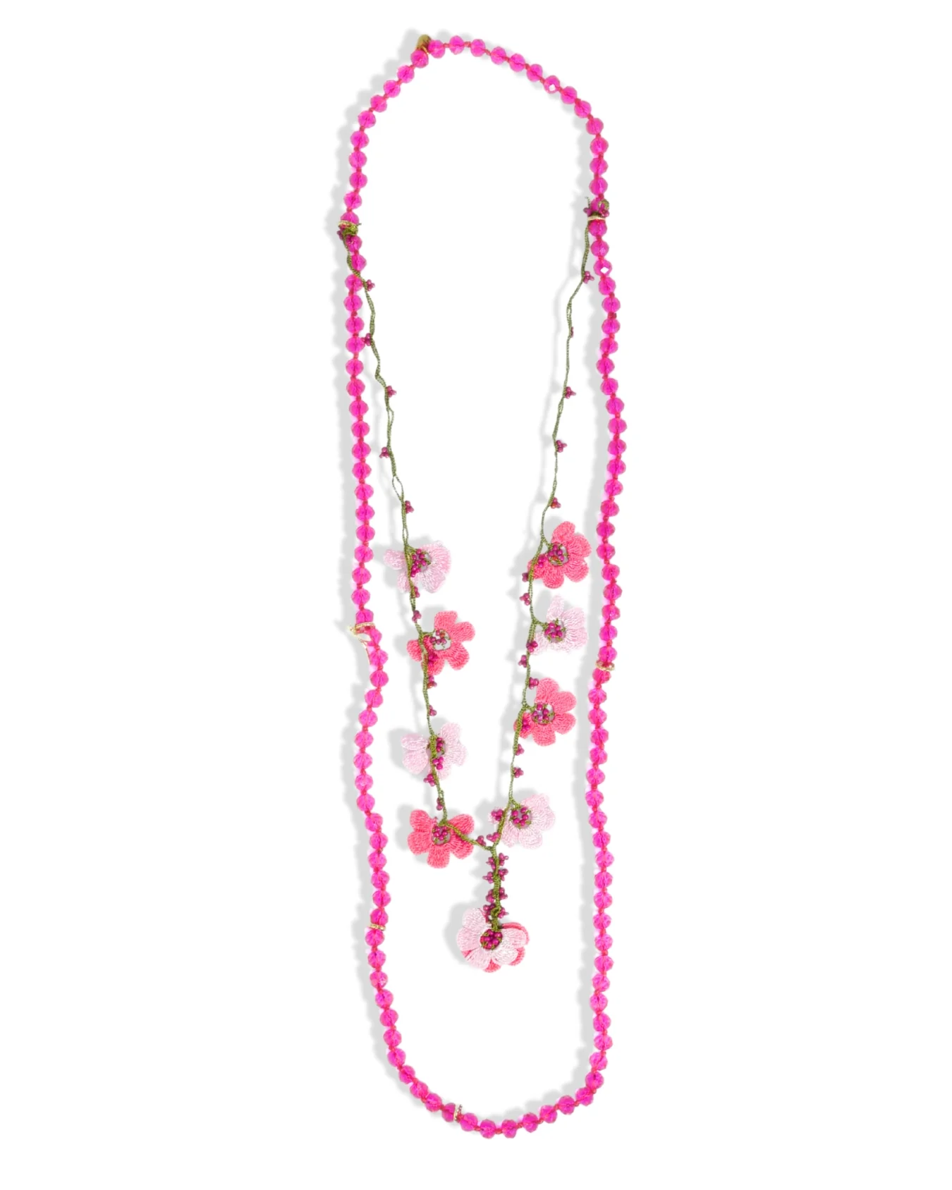 La Collana Flower ALMALA, è un accessorio unico e femminile: questa collana lunga abbina perline colorate a una collana all’uncinetto, arricchita da fiori in filo abbinati ai colori delle perline. Perfetta per dare un tocco boho-chic e giocoso a qualsiasi outfit.