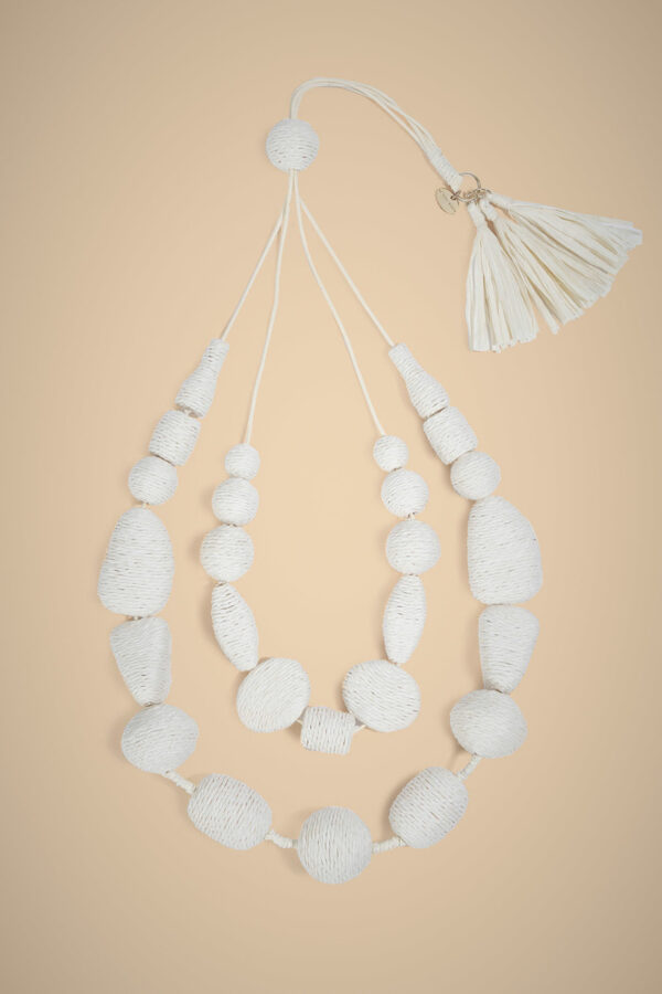 - Collana lunga doppio giro con elementi fasciati in filo cerato