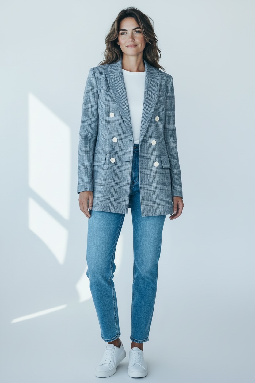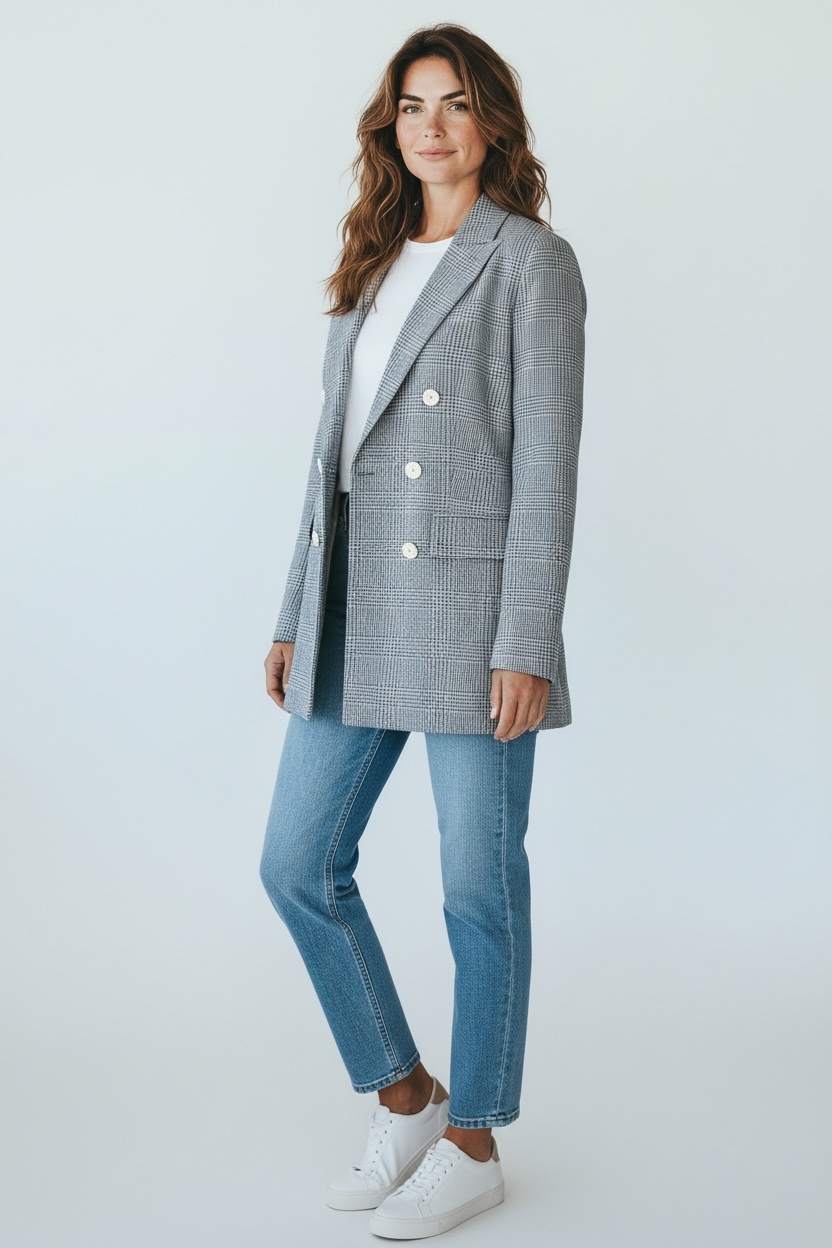 - Giacca doppio petto in felpa tinto light Principe di Galles