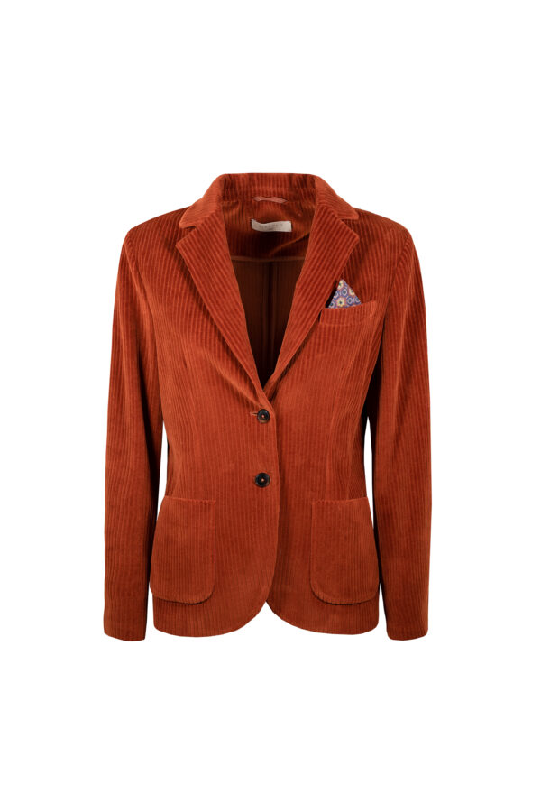 La Giacca slim fit Corduroy CIRCOLO 1901, è una giacca in velluto a coste. Rever classico, chiusura a due bottoni, polsini con bottoni, una tasca a filo e due a toppa.