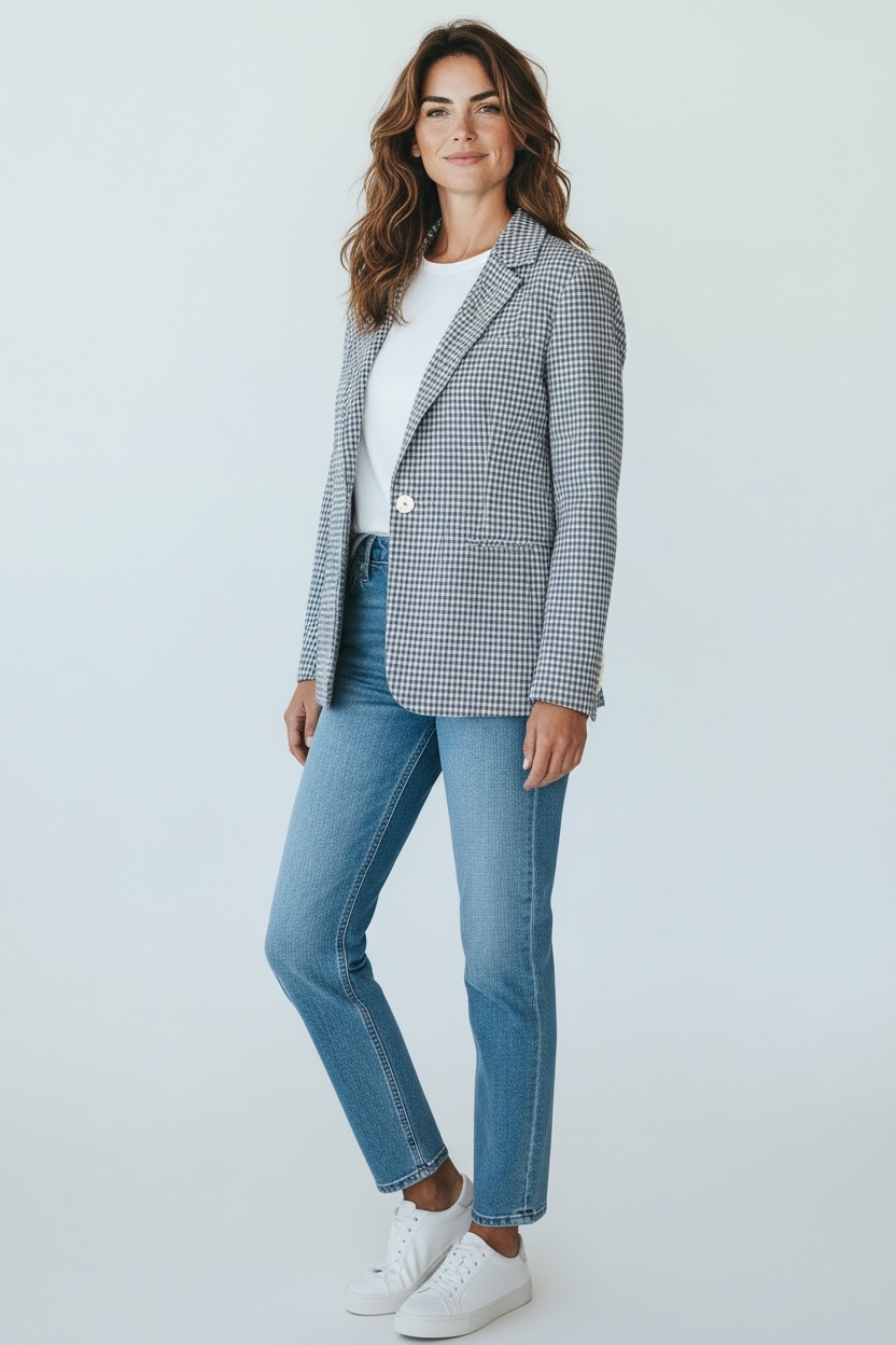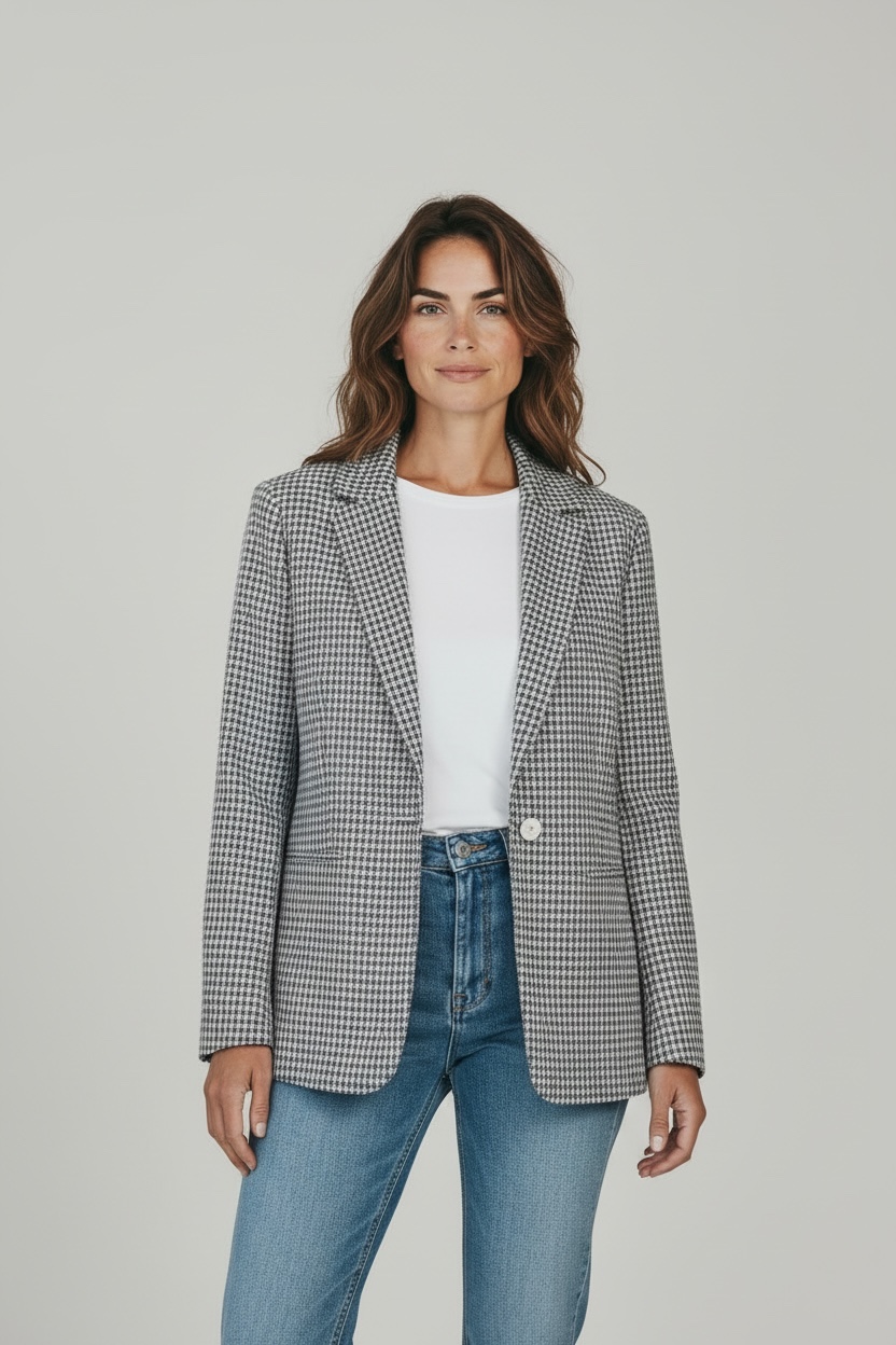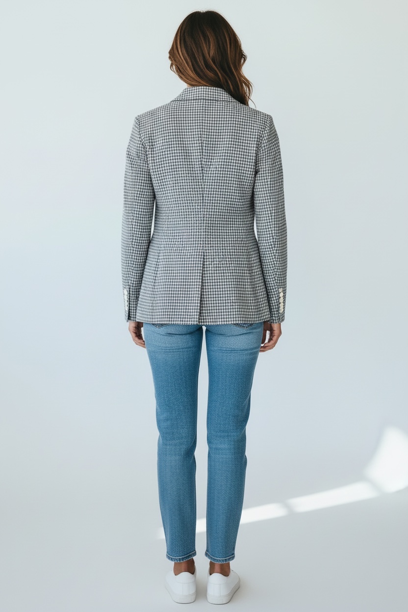 - Giacca a fantasia vichy in cotone elasticizzato