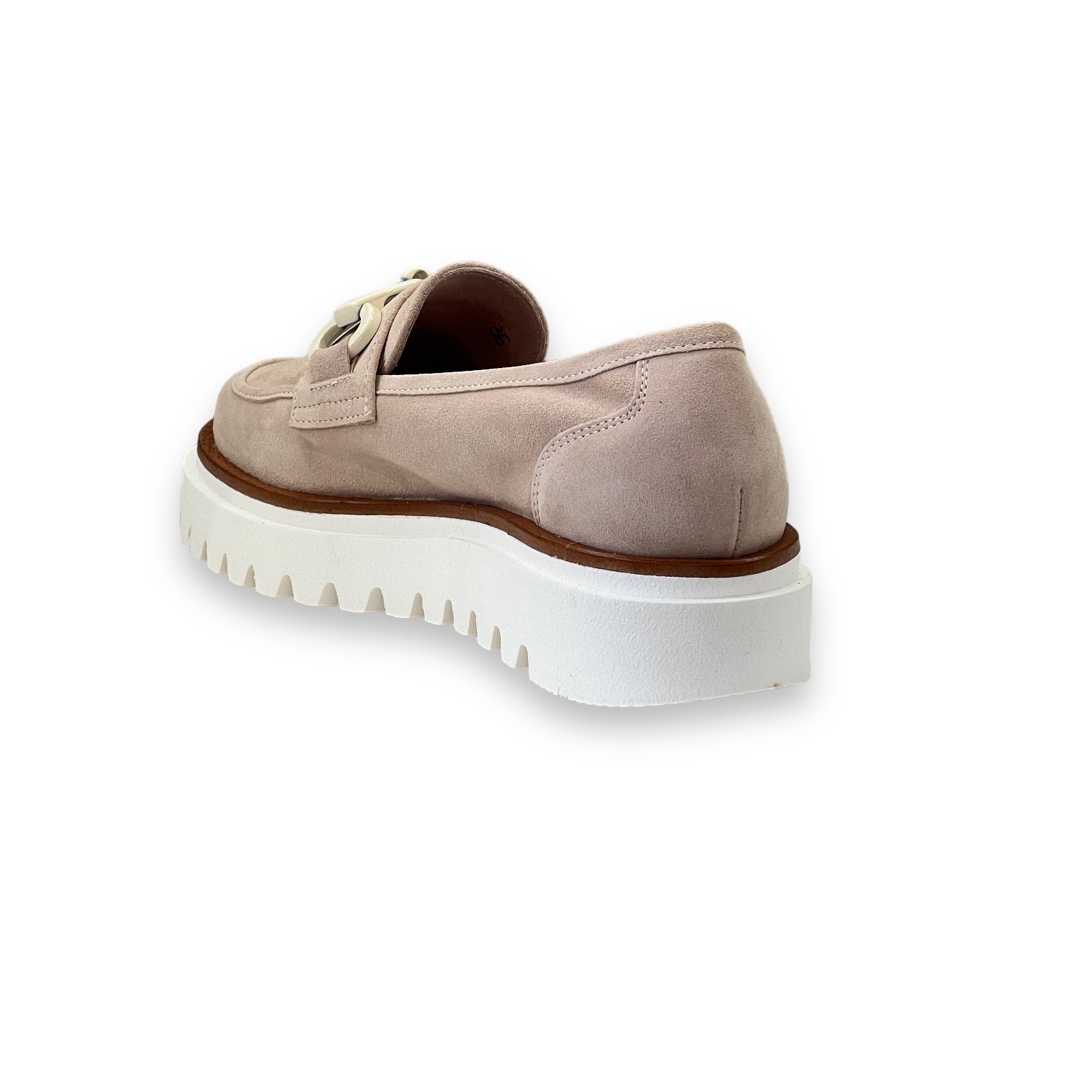 Il Mocassino Via Dazzi BELLE VIE, è un mocassino realizzato artigianalmente in morbido camoscio idrorepellente. Suola in gomma alta 3 cm , tutto rigorosamente made in Italy.
