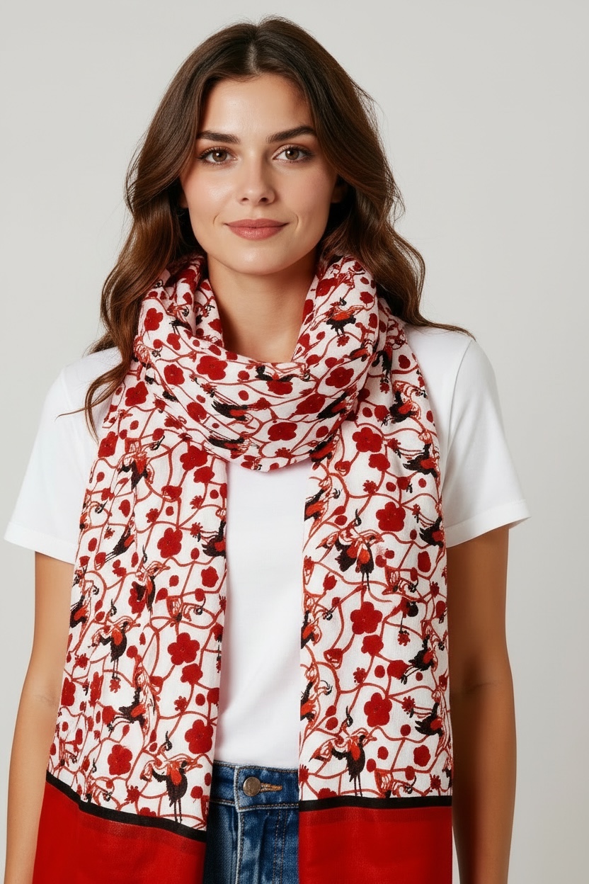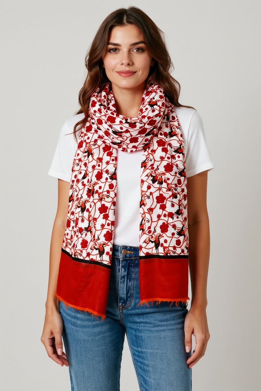 La Sciarpa Nara PYAAR, è una sciarpa in puro cotone, con stampa digitale, sfrangiata a mano sul lato più corto.