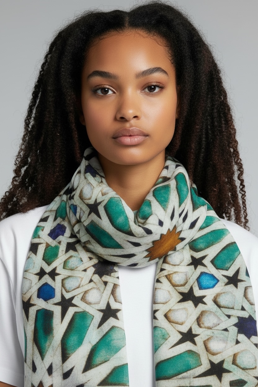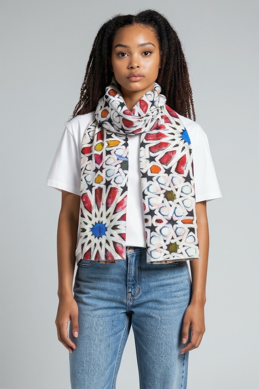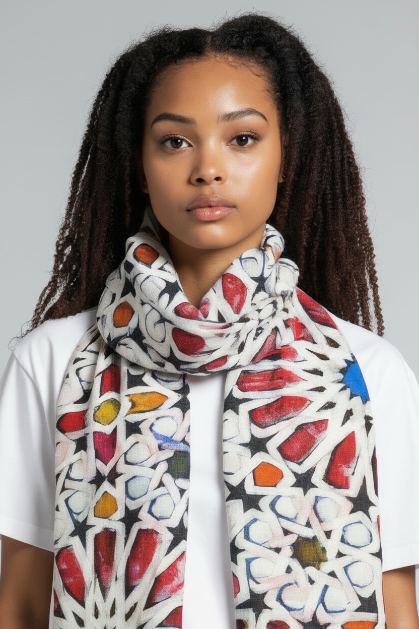 - Sciarpa con stampa ditigitale geometrica