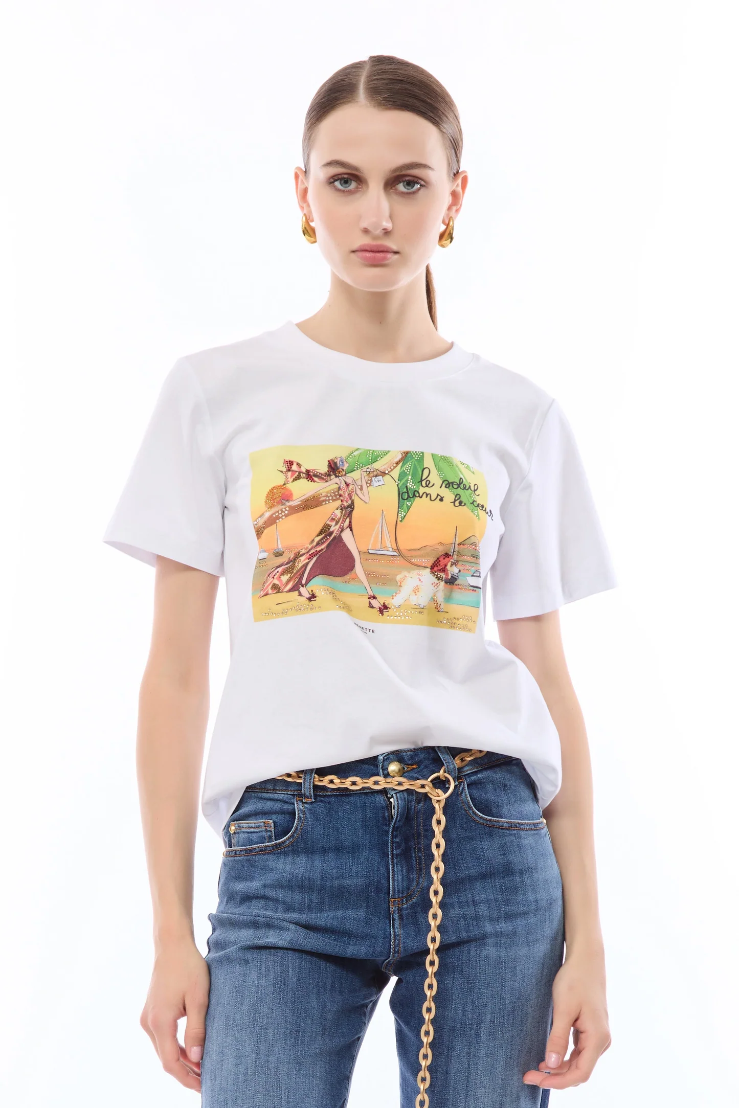 La T-shirt Doraimon NENETTE, è una t-shirt con stampa “Beach” d’ispirazione vintage Riviera. Il design è caratterizzato da una vestibilità regolare e girocollo strutturato, essenziale versatile per outfit contemporanei. Ideale per chi cerca un pezzo d’impatto visivo con un taglio classico e pulito.
