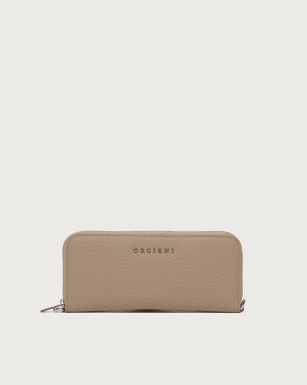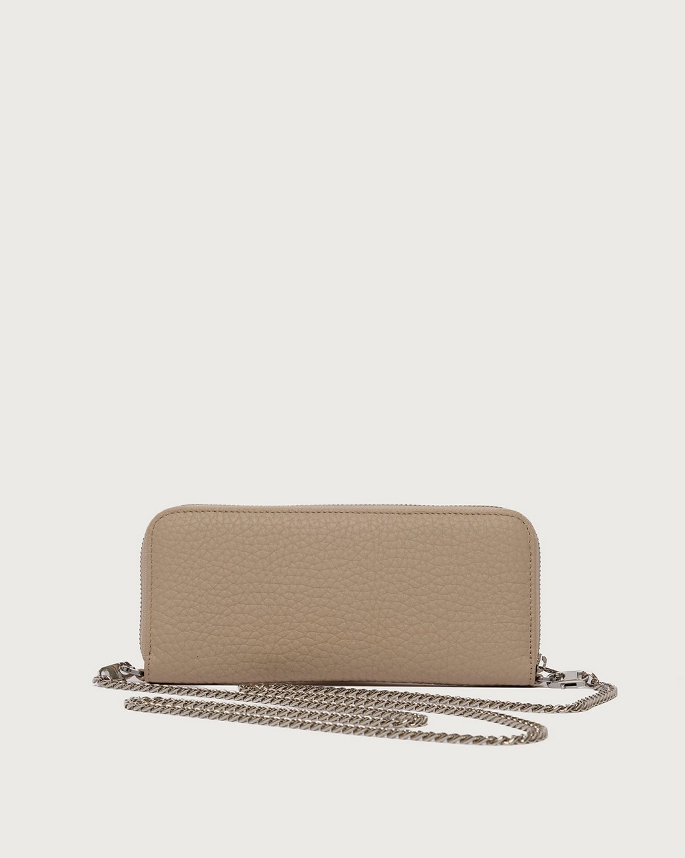 La Zip Around Slim Soft ORCIANI, è un portafoglio in pelle martellata con catena da portare a tracolla.